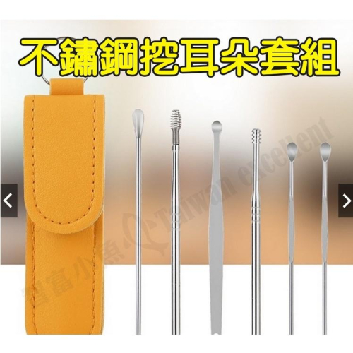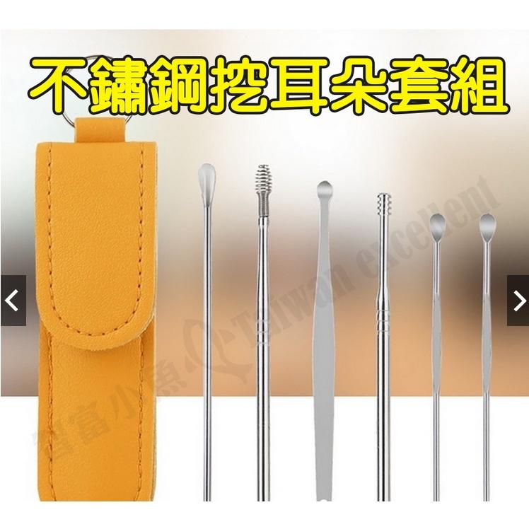 【生活家居 快速出貨 電子發票】不鏽鋼挖耳朵套組附收納套 六件組 耳扒 送禮 交換禮物 挖耳朵