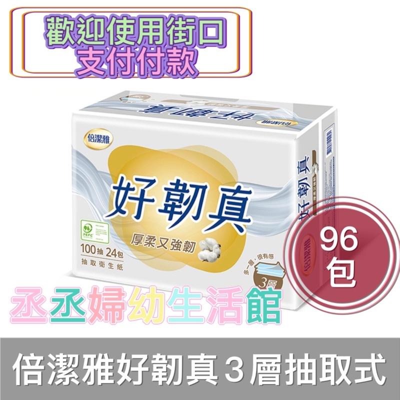 【限今日付款】倍潔雅好韌真3層衛生紙(100抽24包4袋/箱