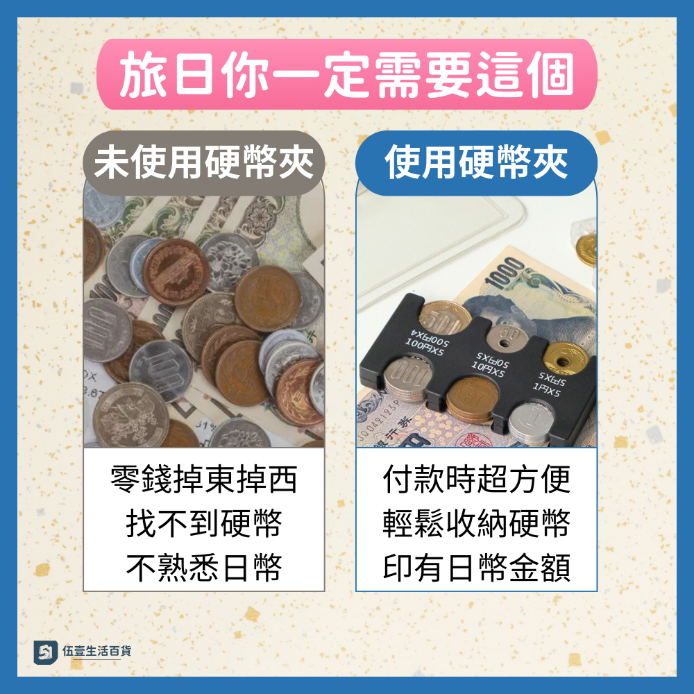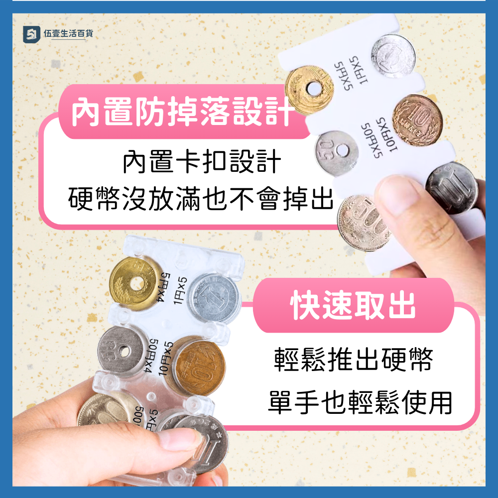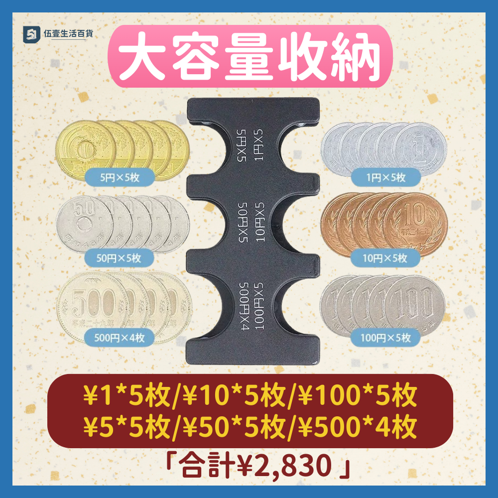 精準收納| 硬幣夾清晰標記各類日幣面額(1、5、10、50、100、500円),一目了然、拿取精準。