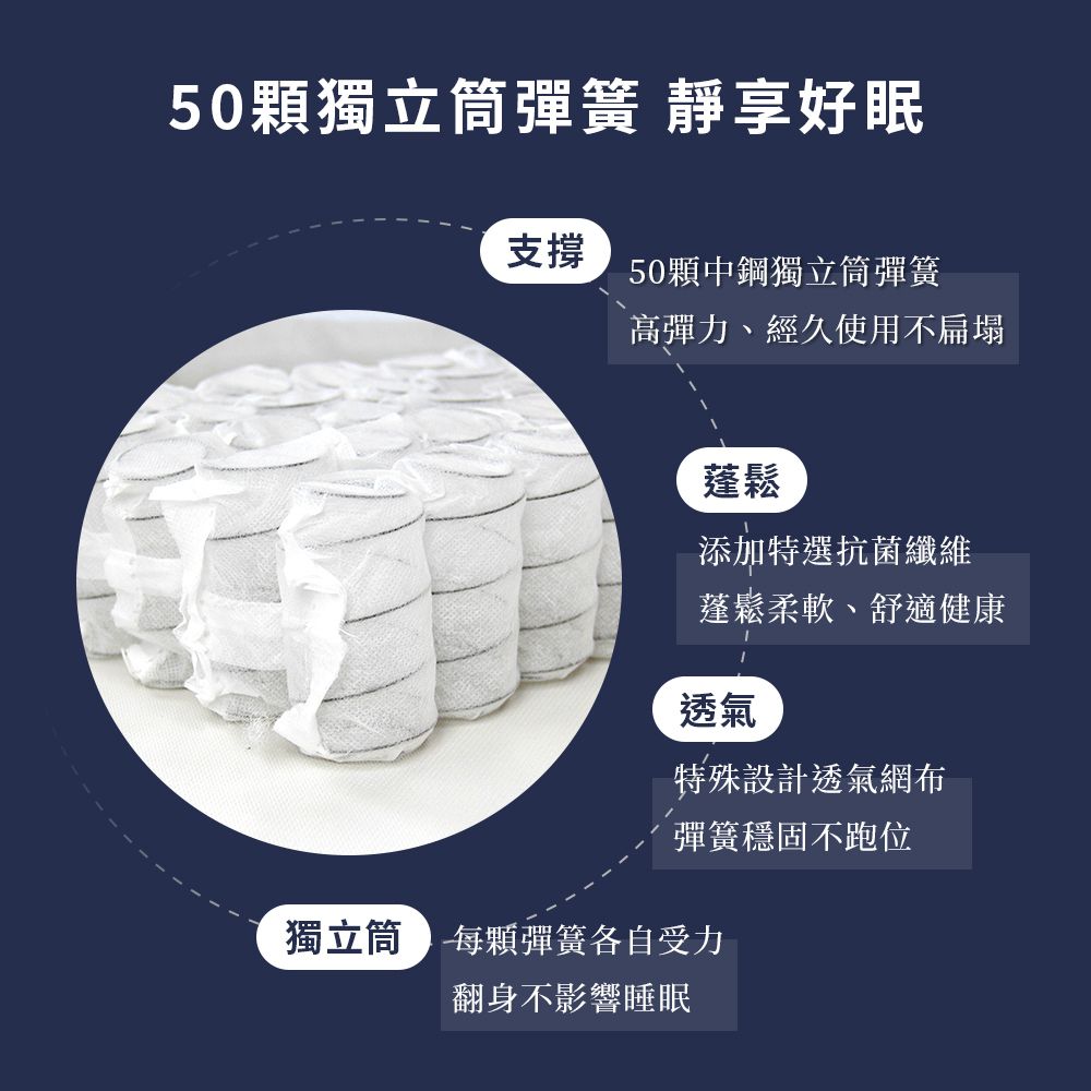 填充物:10%聚酯纖維(內含50顆獨立筒彈簧)