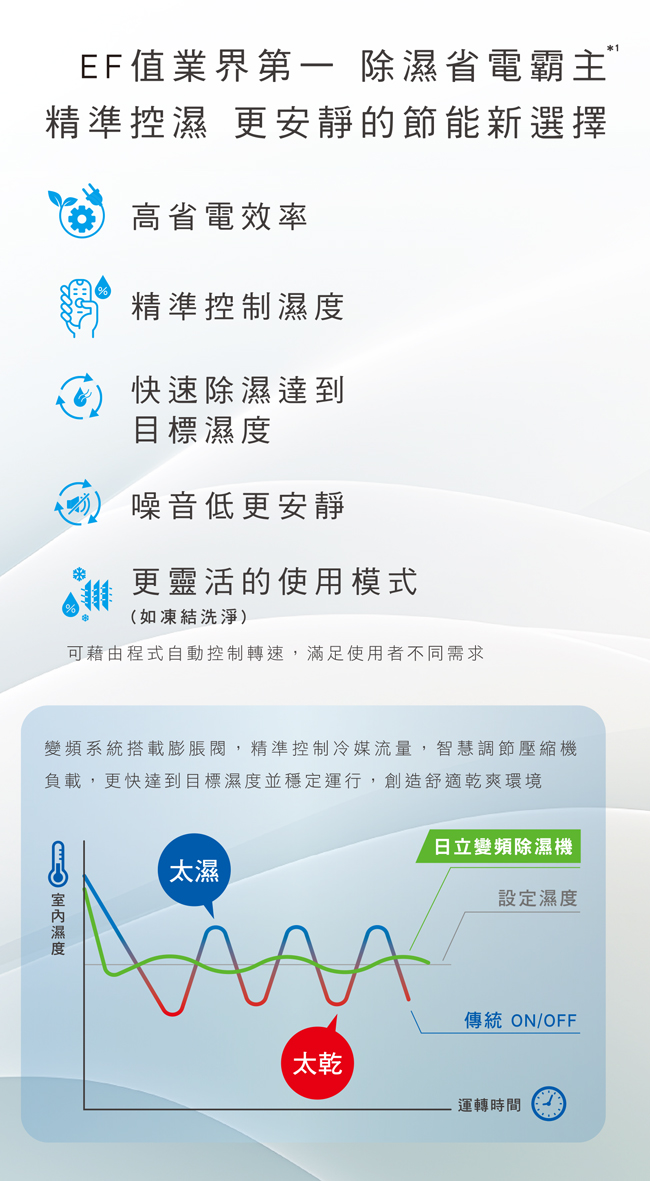 主要功能:舒適節電 / 低濕乾燥 / 極靜除濕 / 防霉防蟎