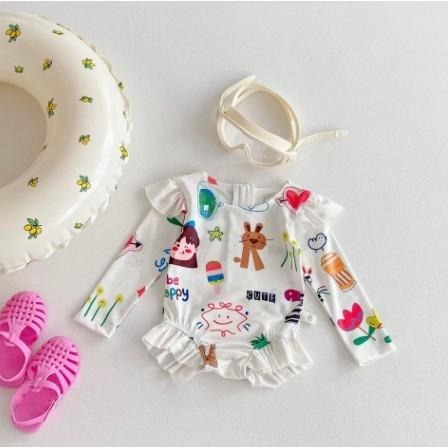 夏季韓國童裝女寶滿版卡通連身泳裝