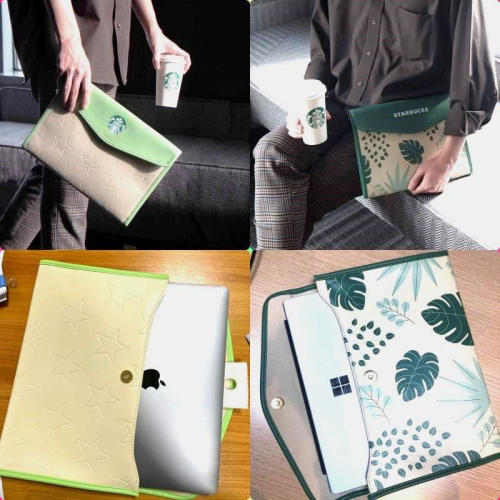 泰國Starbucks星巴克 限量 平板包 電腦包 時尚簡約的設計風格,可以放平板或電腦 當文件包或是手拿包也超吸睛 外出拿在手上絕對會吸引其他人注目的眼光喔!! 共有兩款可以選擇: -星星 -綠葉 **規格:32 x 23.5 cm