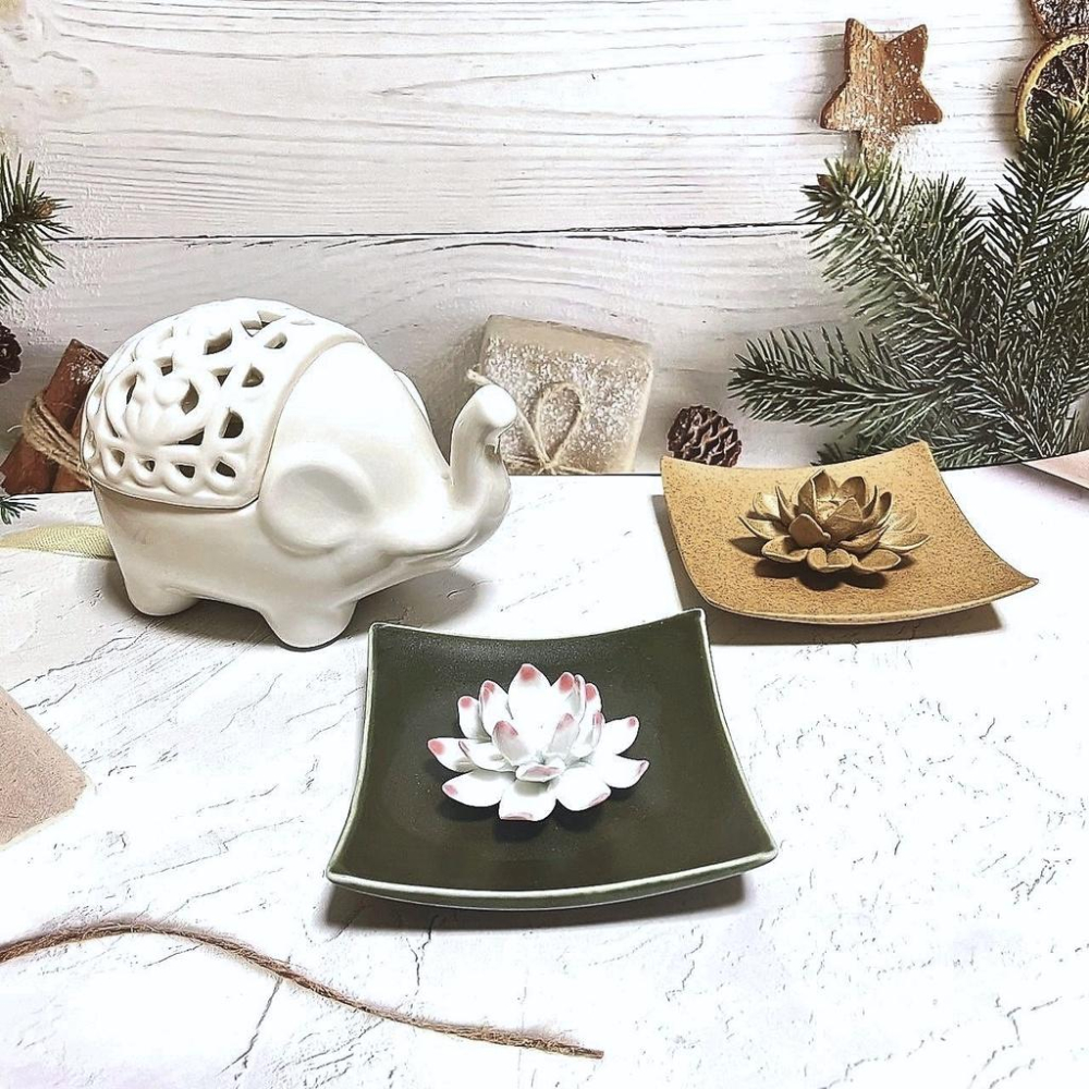 **因為萊爾富物流很粗魯會把商品用摔的,故請選擇其他超商物流或是蝦皮店到店,謝謝您 泰國陶瓷經典工藝之美舉世聞名 大象白瓷香台,俐落的線條搭配上流利渾圓的曲線 簡約中帶有華麗的風格,背蓋簍空雕花更添顯其貴氣 把塔香放進去點燃,看著香煙裊裊升起格外療癒動心 另2款蓮花彩釉 木檀色 兩用香台 古樸彩釉底座搭配上蓮花增顯氣質典雅 蓮花上面點綴著桃紅色彩釉更顯嬌滴 古樸的木檀色有種反璞歸真的樸實感 可以當作塔香台或是線香台,讓您一台兩用非常方便 **規格: 大象白瓷香台:約15X9X9cm 蓮花彩釉兩用香台:約9.5X9.5X3.5cm 木檀色兩用香台:約9.5X9.5X3.5cm