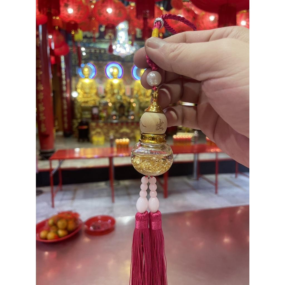 曼谷 龍蓮寺 轉運吸財平安葫蘆 葫蘆底部滿滿的金箔代表財富滿滿 葫蘆的諧音是福祿也代表福氣與平安 葫蘆口小肚大,象徵財庫飽滿廣納四方財 可以掛在車上,家中財位或是大門 可以驅災辟邪,吸取晦氣,祈求幸福,提升運勢保平安!! **規格:葫蘆主體高約7cm,寬約4cm,整體含掛繩流蘇約36cm
