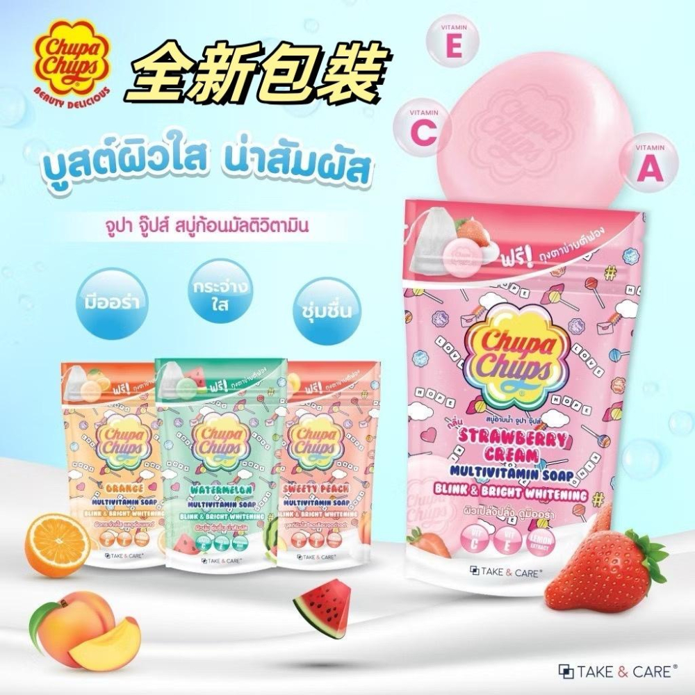 **加倍佳膠原皂換新包裝囉,每袋還附贈一個起泡網喔!! 泰國 CHUPA CHUPS 加倍佳膠原皂 甜美清新的水果香味,讓您一用就愛上她^^ 共有四款可以選擇: -草莓 -西瓜 -柳橙 -甜桃 **規格:80g