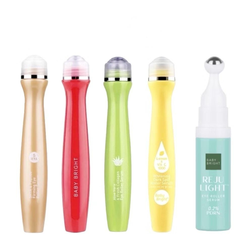 泰國 BABY BRIGHT 眼部滾珠精華棒 幫助補水保濕,呵護眼部肌膚 專為眼部按摩設計的滾珠,能邊塗抹邊按摩眼周肌膚 讓您雙眼明亮動人,增添眼部肌膚晶亮光澤 共有5款可以選擇: -蘆薈膠原(綠色) -番茄穀胱(紅色) -檸檬VIT C(黃色) -波尿酸5HYA(金色) -六胜肽Rejulight(藍色)  **規格: 藍色:7ml 綠,紅,黃,金色:15g