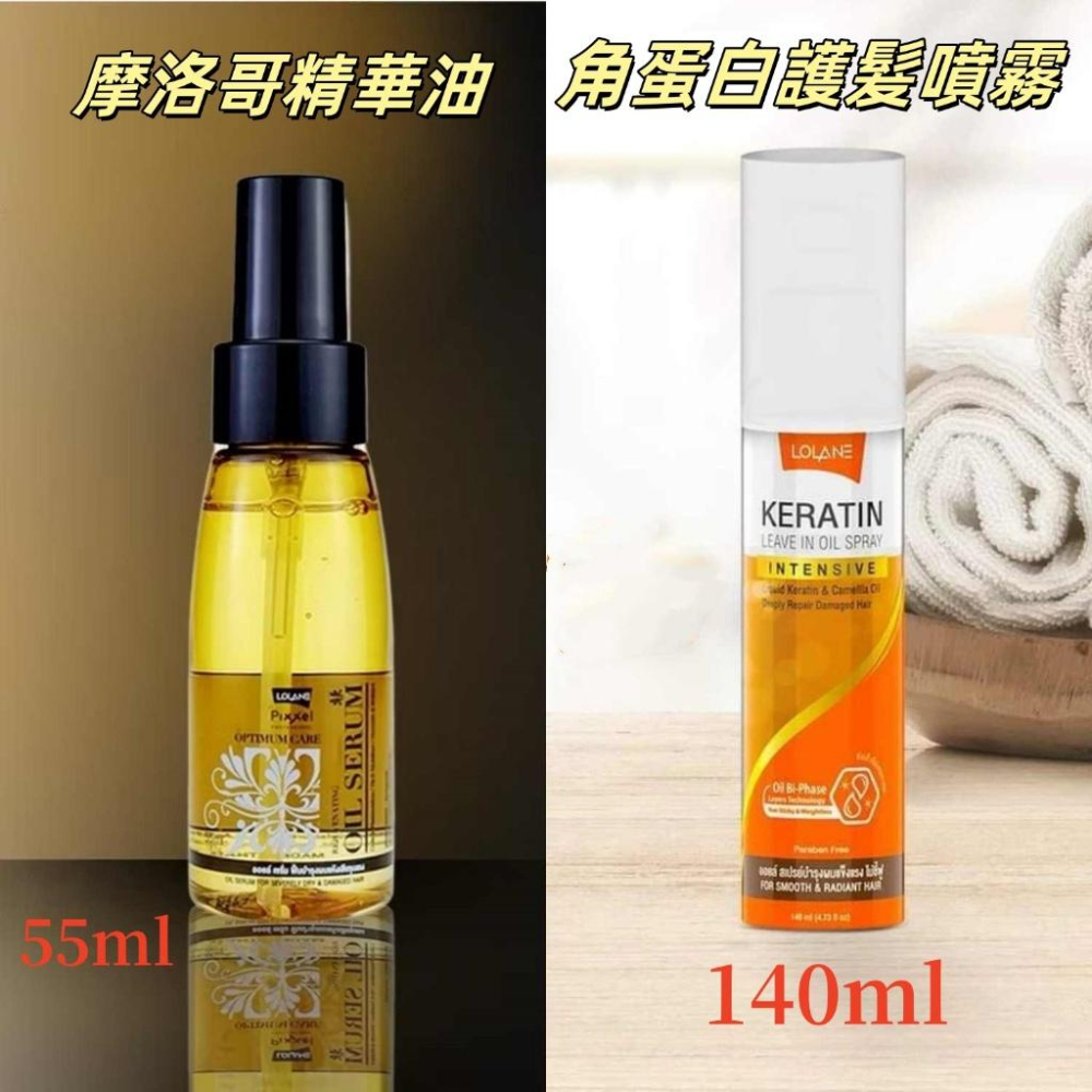 泰國 LOLANE 摩洛哥精華油 角蛋白護髮噴霧 免沖洗,讓您秀髮柔順好梳理 -摩洛哥精華油55ml: 添加 摩洛哥堅果油,油莎草根油,辣木油...等精華油,讓您秀髮撫平毛躁,柔軟順滑,彷彿重獲新生!! -角蛋白護髮噴霧140ml: 添加角蛋白可使秀髮恢復強韌,山茶花油滋養秀髮維持秀髮油水平衡,為您打造強韌、柔軟、光滑輕盈的秀髮!!