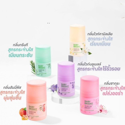 泰國 BABY BRIGHT 滾珠瓶 清新的花香,讓您舉手投足都充滿自信 共有五款可以選擇: -粉色:濟州島櫻花香 -綠色:綠茶香 -橘色:蜜桃香 -紫色:鈴蘭花香 -黃色:山茶花香 **規格:50ml