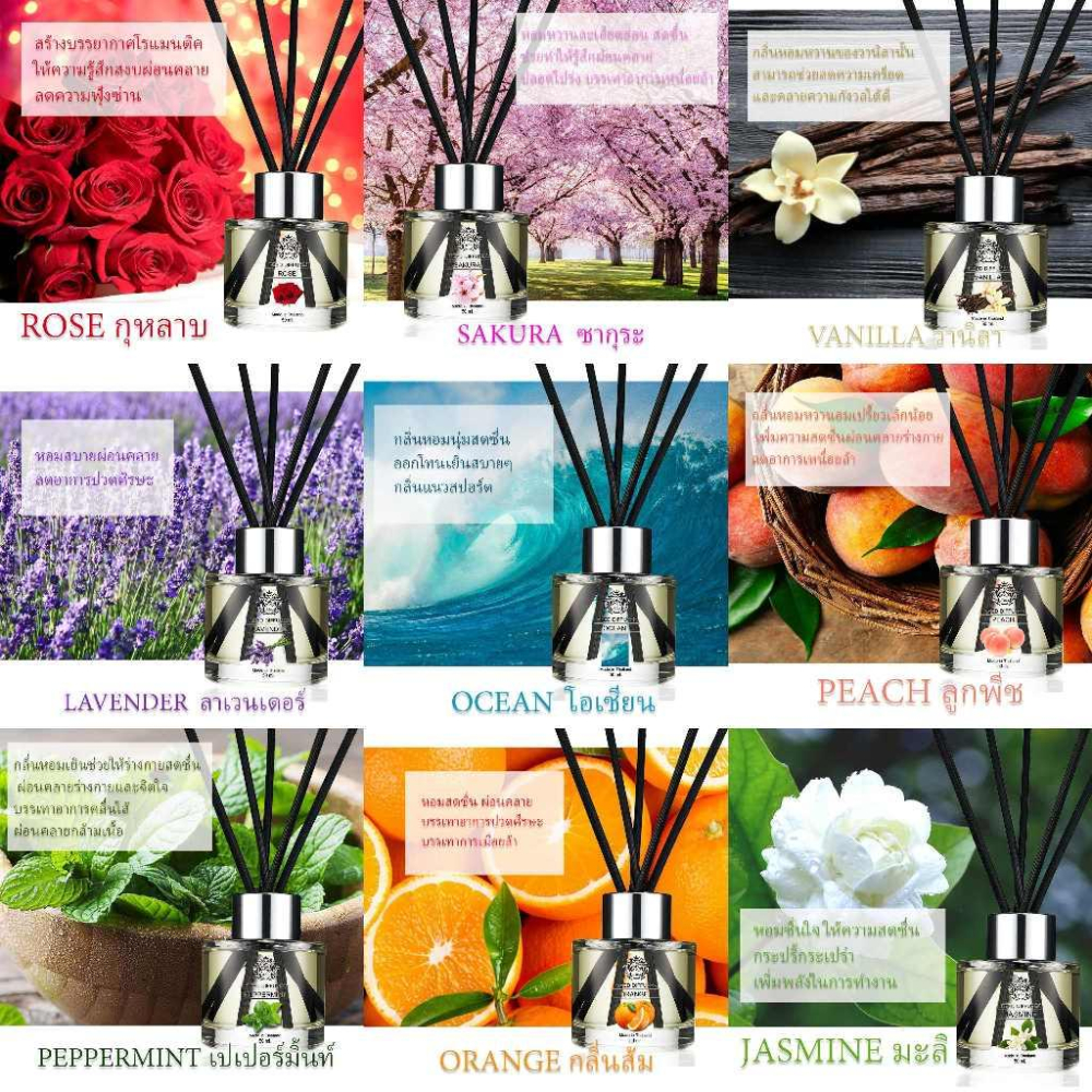 泰國 ALICA 擴香 通過國際香料協會IFRA認證 清新,自然,不刺鼻 融合高級香氛精萃的完美組合 讓您感受到輕鬆、愉悅和滿滿的幸福感!! 共有19款香味可以選擇: 茉莉花 薰衣草 海洋 橙香 桃子 薄荷 玫瑰 櫻花 香草 尤佳利 香茅 藍莓 草莓 櫻桃 伊蘭伊蘭 百合 洋甘菊 費洛蒙 茶樹 **規格:50ml+5根擴香棒(商品原廠簡易包裝,不介意再下單)