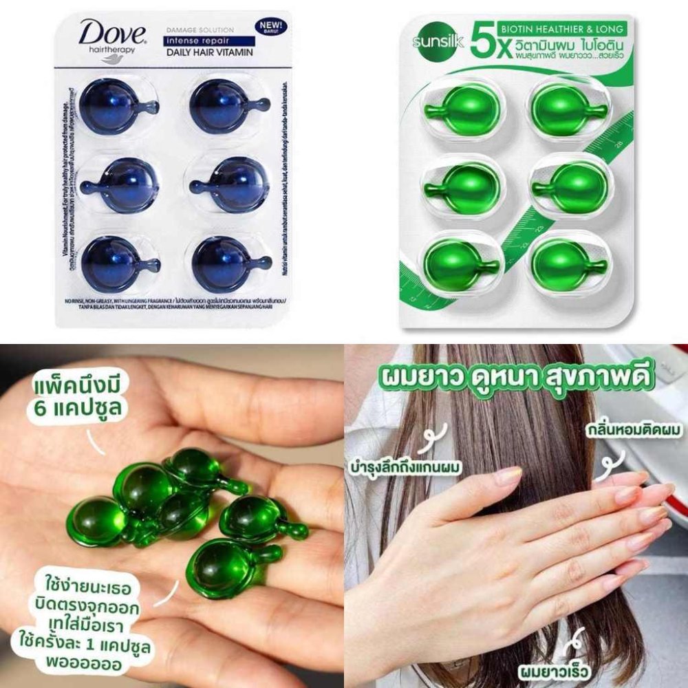 泰國 DOVE 多芬 SUNSILK 晴絲 護髮油膠囊 使用後不需沖洗,幫助秀髮柔順不毛躁易於梳理 - DOVE多芬護髮油膠囊:針對髮尾加強修護 -SUNSILK晴絲護髮油膠囊:強健滋潤秀髮 **規格:1mlX6粒/片