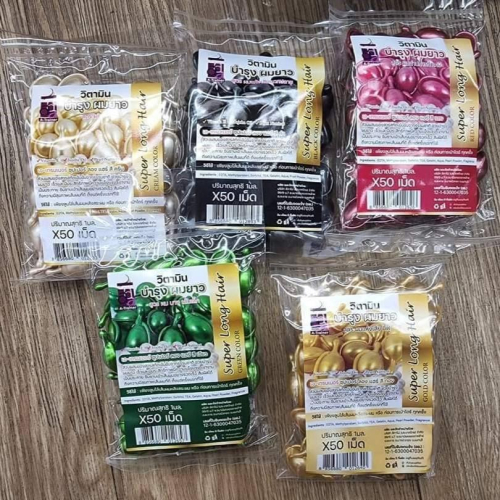 泰國 Super Long Hair 護髮膠囊 免沖洗,小巧方便好攜帶 讓您在家體驗美髮沙龍級的享受 共有五款可以選擇: 綠Green-Long Hair 金Gold-乾燥髮質適用 紅Red-染燙髮質適用 白Cream-護髮 護色 黑Black-受損髮質適用 **規格:50粒入(以實際包裝數量為主)