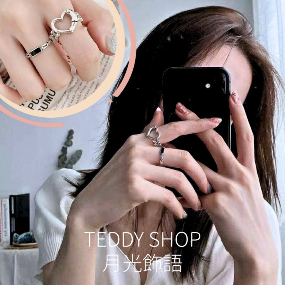 |Teddy Shop|💖可調式小眾愛心戒指套組✨ 愛心 戒指套組 可調節 銀色 戒指 氣質 愛心戒指
