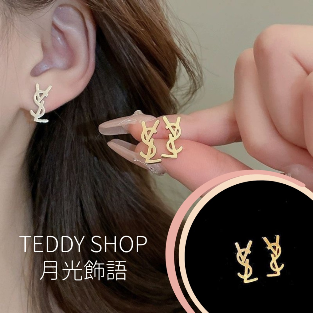 |Teddy Shop|💎高級感鈦鋼字母耳環✨ 字母 耳環 鈦鋼 925銀針 金色 字母耳環 耳針