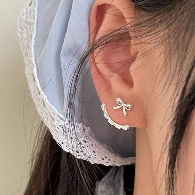|Teddy Shop|𝑺𝟗𝟐𝟓純銀 💎設計感蝴蝶結後掛式耳環🎀 銀色耳環 氣質耳飾 甜美高級感款