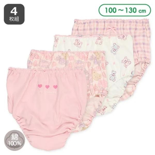 西松屋 女童純棉內褲四件組 心形・甜點・熊・格紋 (100cm/110cm/120cm/130cm)