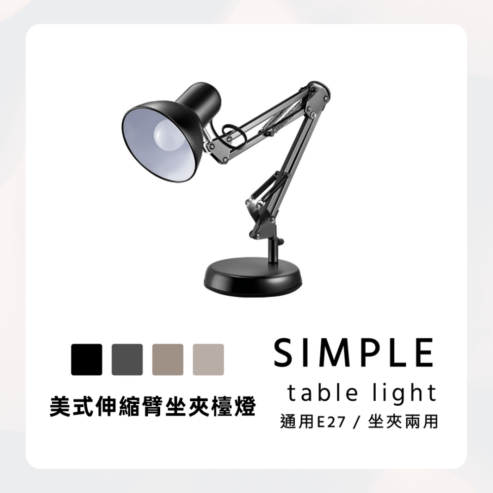 💛 內容:燈罩x1,伸縮燈臂x1、底座x1、桌夾x1。 (出貨不含燈泡,附贈桌夾)