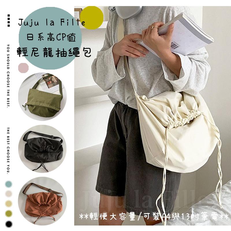 *Juju la Fille* 【台灣出貨+發票+優惠中】男女都能背 日系高CP值 超輕尼龍抽繩水桶包 可放A4