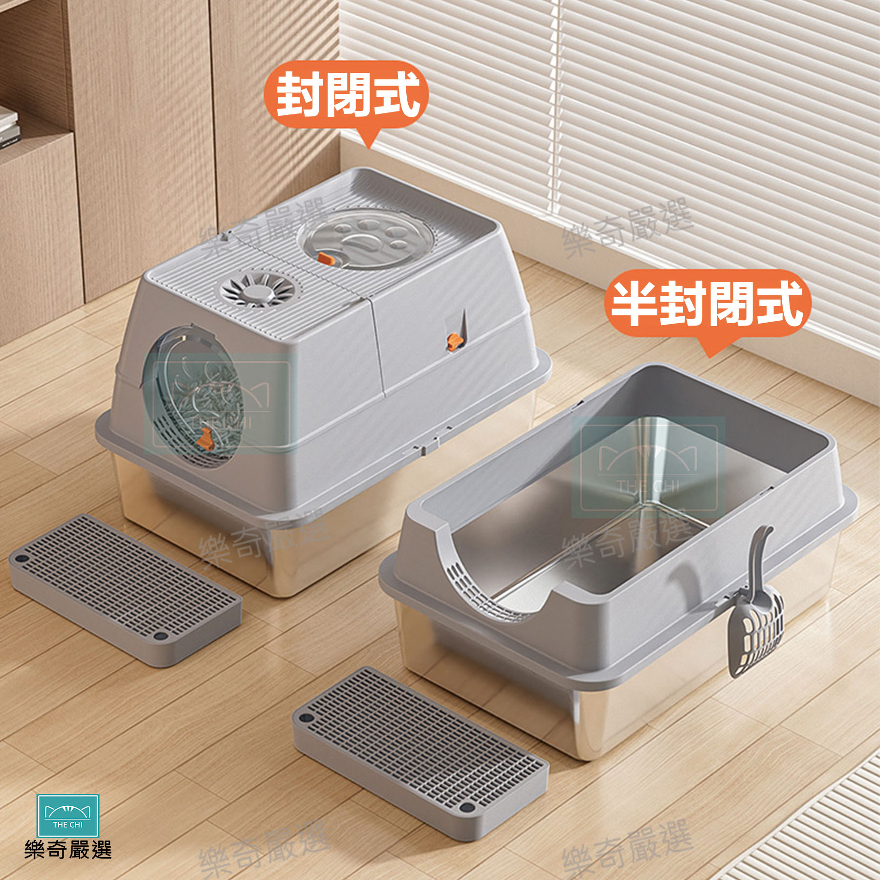 不鏽鋼封閉式貓砂盆 不沾底 不鏽鋼 半封閉貓砂盆 貓廁所 貓便盆 貓砂盆 貓砂 寵物用品 封閉式