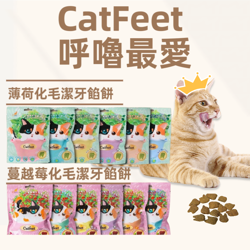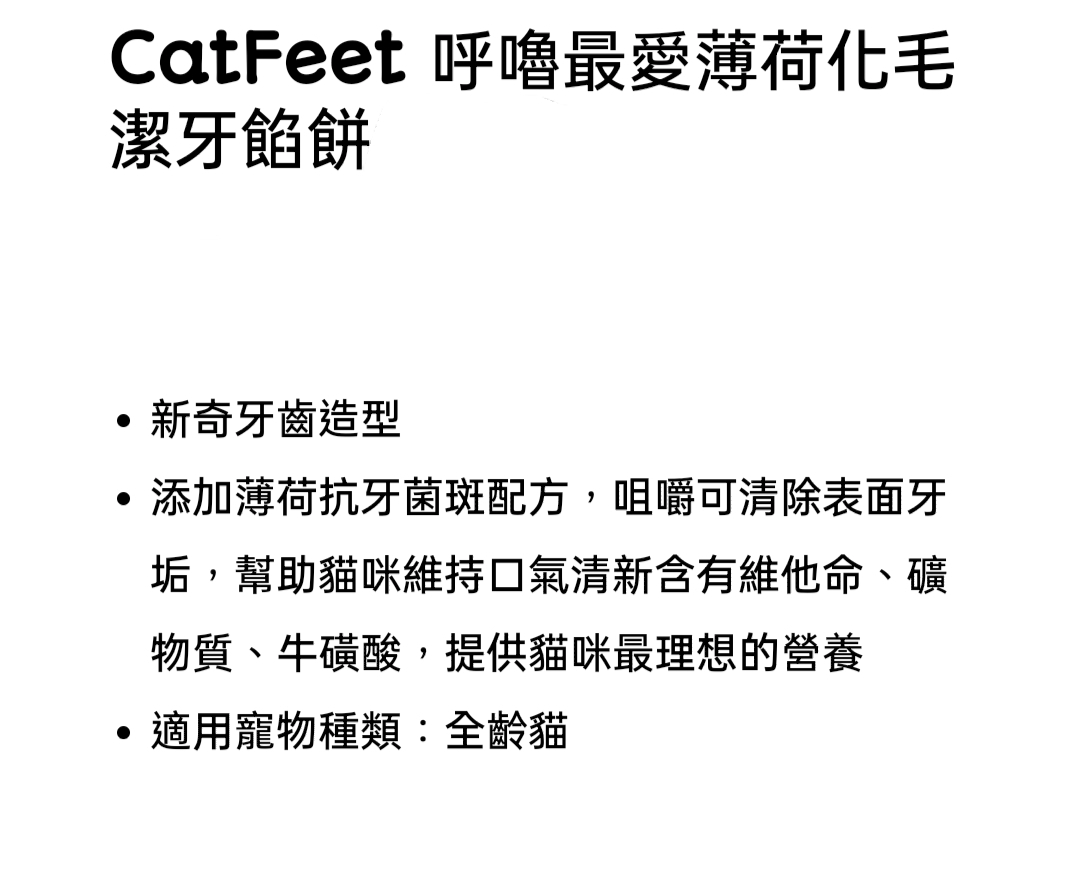 「毛嗜肉」CatFeet 呼嚕最愛薄荷化毛潔牙餡餅-貓咪潔牙餅、貓咪餡餅、貓咪餅乾