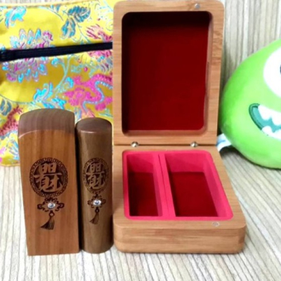 整套:日日有見財-加長型-高人一等-大小章+精美耐用竹製印盒