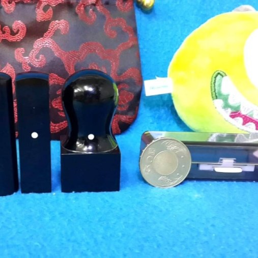 黑牛角為黑水牛角製作之印章,材質溫潤、堅硬、富有光澤,每個黑牛角都有獨特和天然的牛角紋路,黑牛角印章硬度高、密度也高,代表可使用的時間很長,通常只要小心保管,可用一輩子之久,經濟實惠。