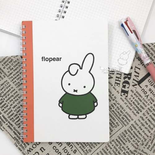 日本製 miffy 米菲兔 米飛兔 圖畫書系列 線圈 5mm方眼 A5 筆記本(白色/綠色衣服)|小鶴日貨