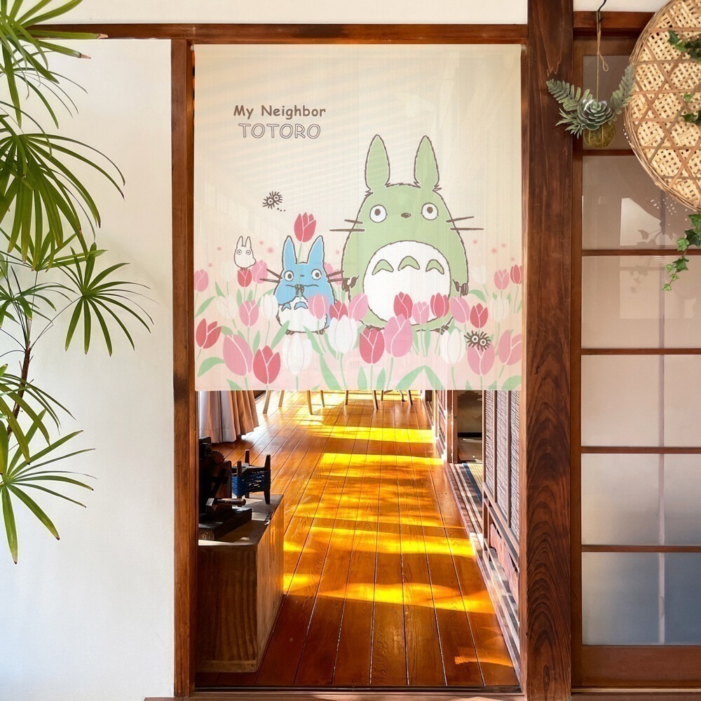 日本製 吉卜力 宮崎駿 龍貓與鬱金香 滿版圖案 短版門簾 85X90cm|小鶴日貨