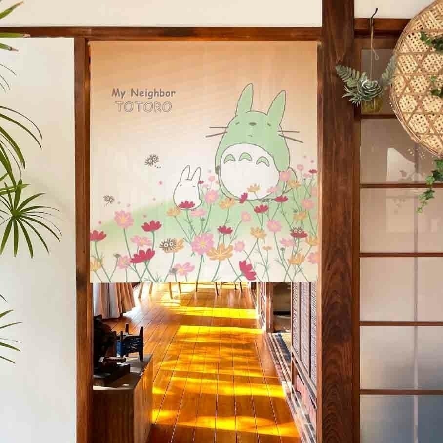 日本製 吉卜力 宮崎駿 龍貓和波斯菊 滿版圖案 短版門簾 85X90cm|小鶴日貨