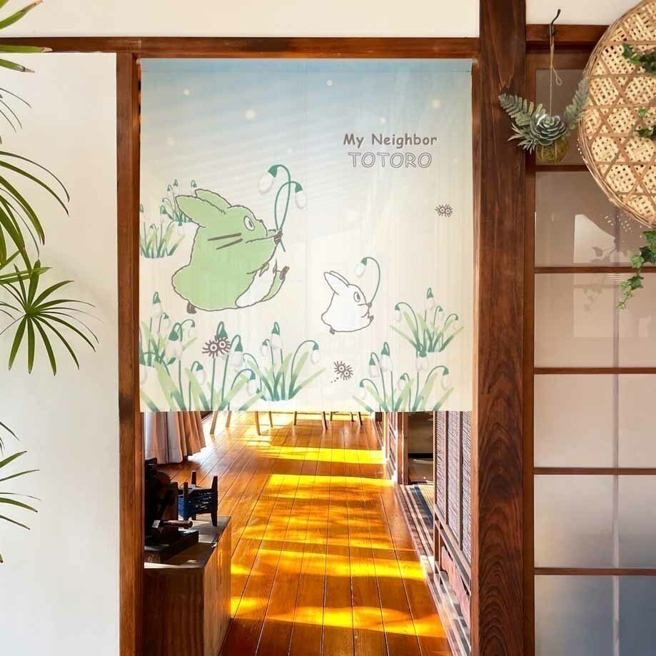 日本製 吉卜力 宮崎駿 龍貓和雪花蓮 滿版圖案 短版門簾 85X90cm|小鶴日貨