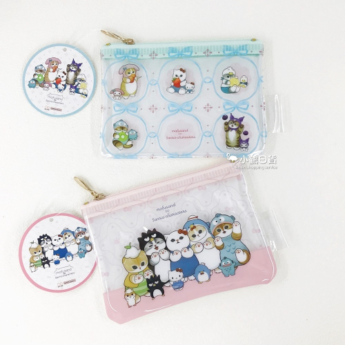 【現貨】日本進口 Sanrio x mofusand 三麗鷗 貓鯊 聯名款 透明 多用途拉鍊小包|小鶴日貨
