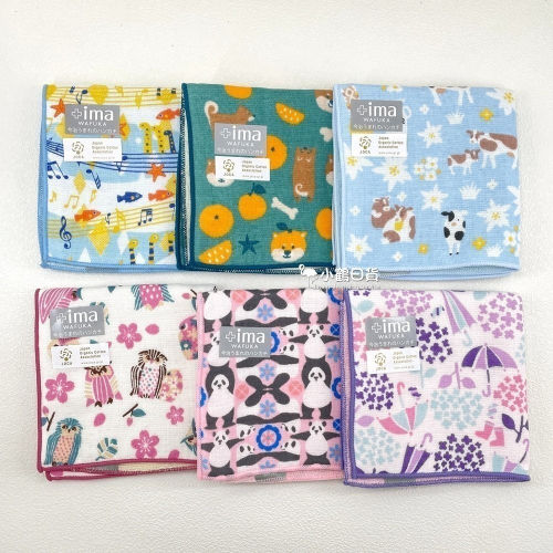 【現貨】日本製 +ima WAFUKA 今治毛巾 動物 食物 滿版圖案 手帕 100%綿|小鶴日貨