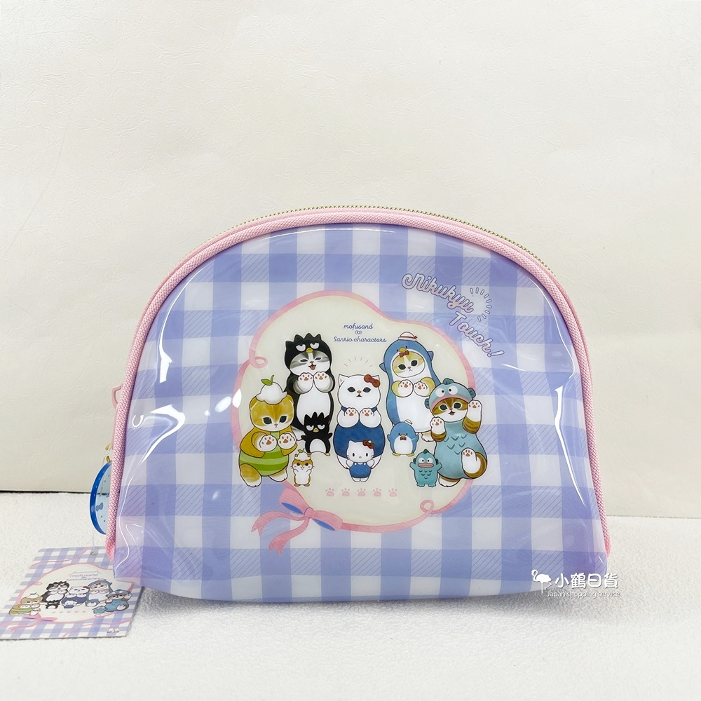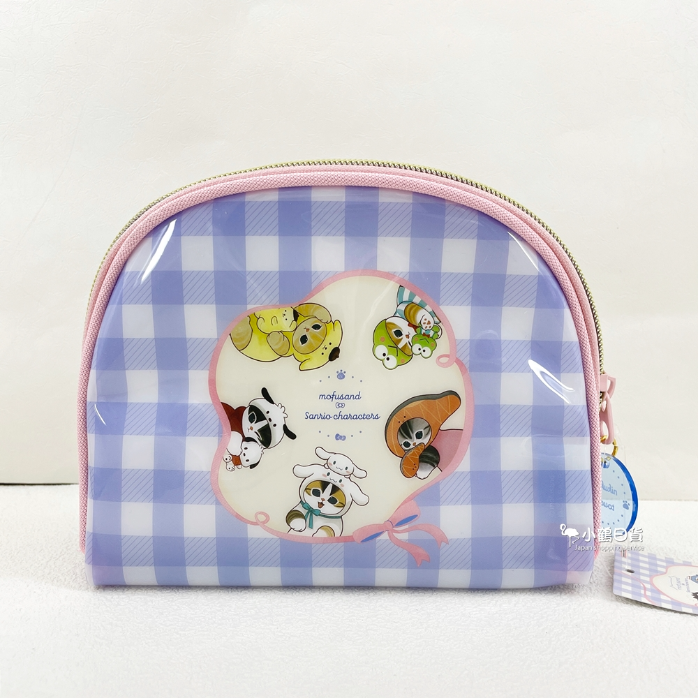 【現貨】日本進口 sanrio x mofusand 三麗鷗 貓咪裝扮 聯名款 大容量 化妝包(格子)|小鶴日貨