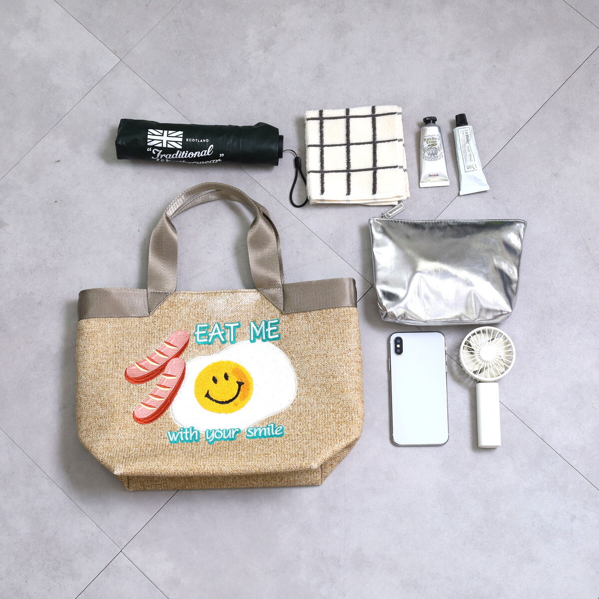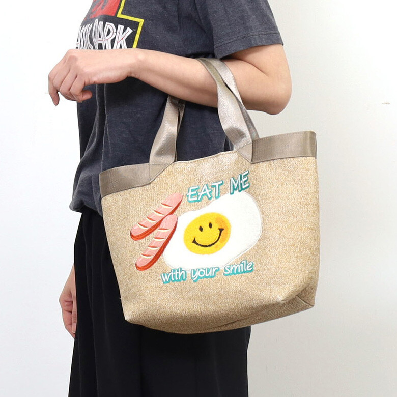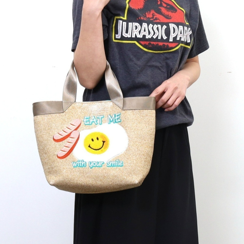 【現貨】日本進口 smile x cooco 微笑主題 刺繡 手提袋 (卡其色/荷包蛋)|小鶴日貨