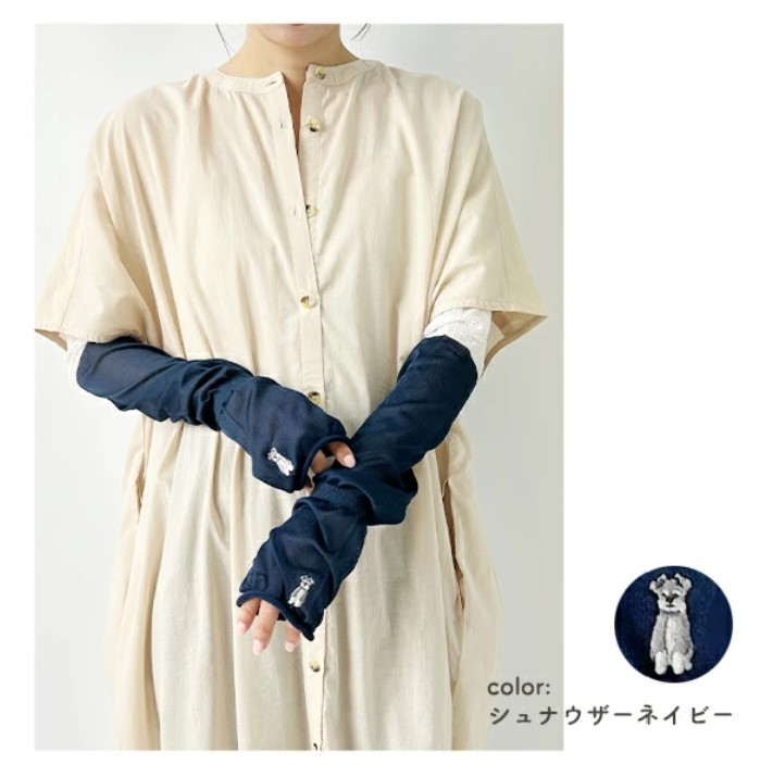 【現貨】日本進口 UV care Arm cover 雪納瑞刺繡 雙色 接觸冷感 防曬袖套 防曬臂套 60cm