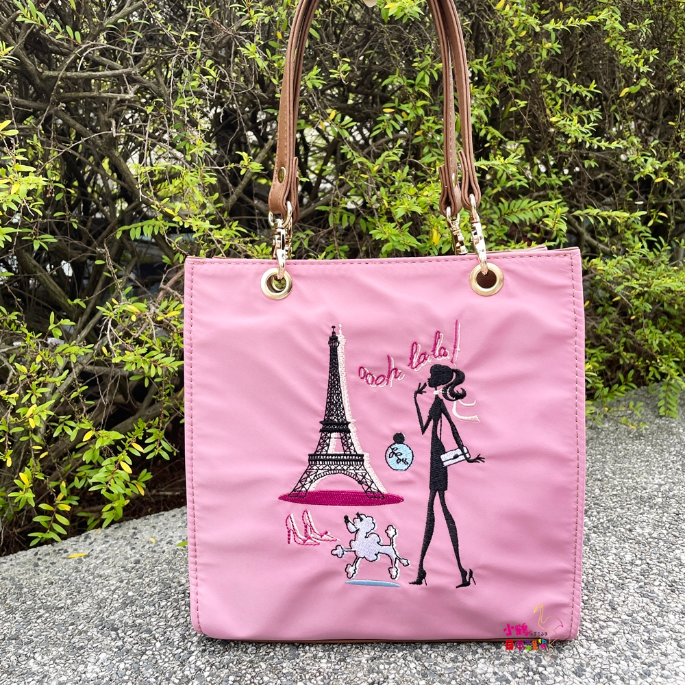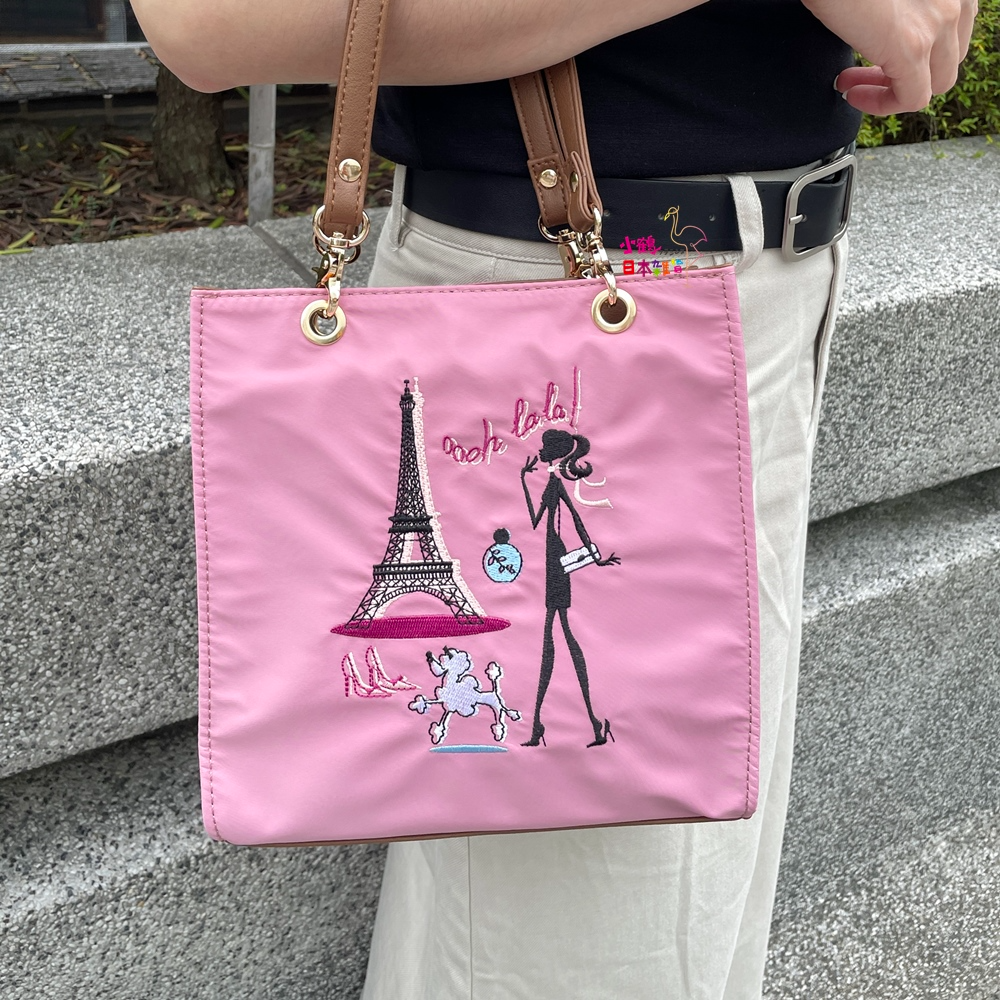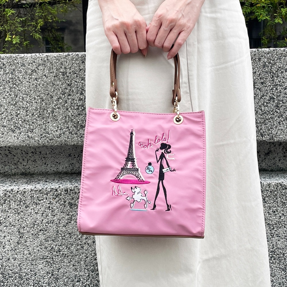 【現貨】日本進口 刺繡 方形 手提袋(粉色/女孩)|小鶴日貨