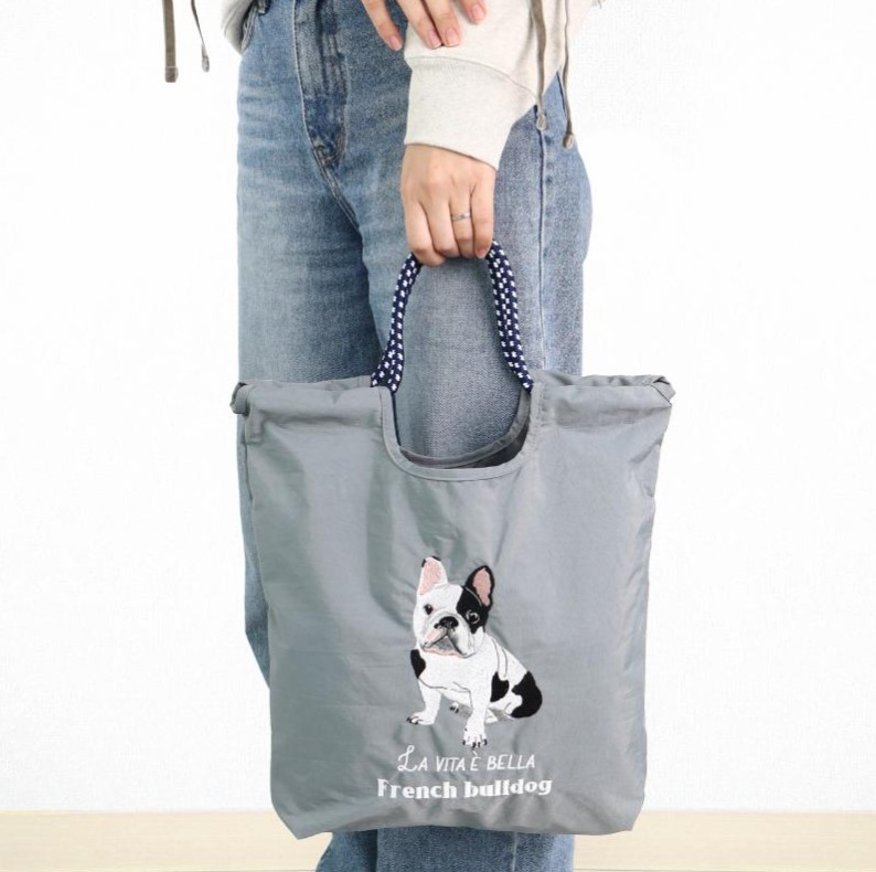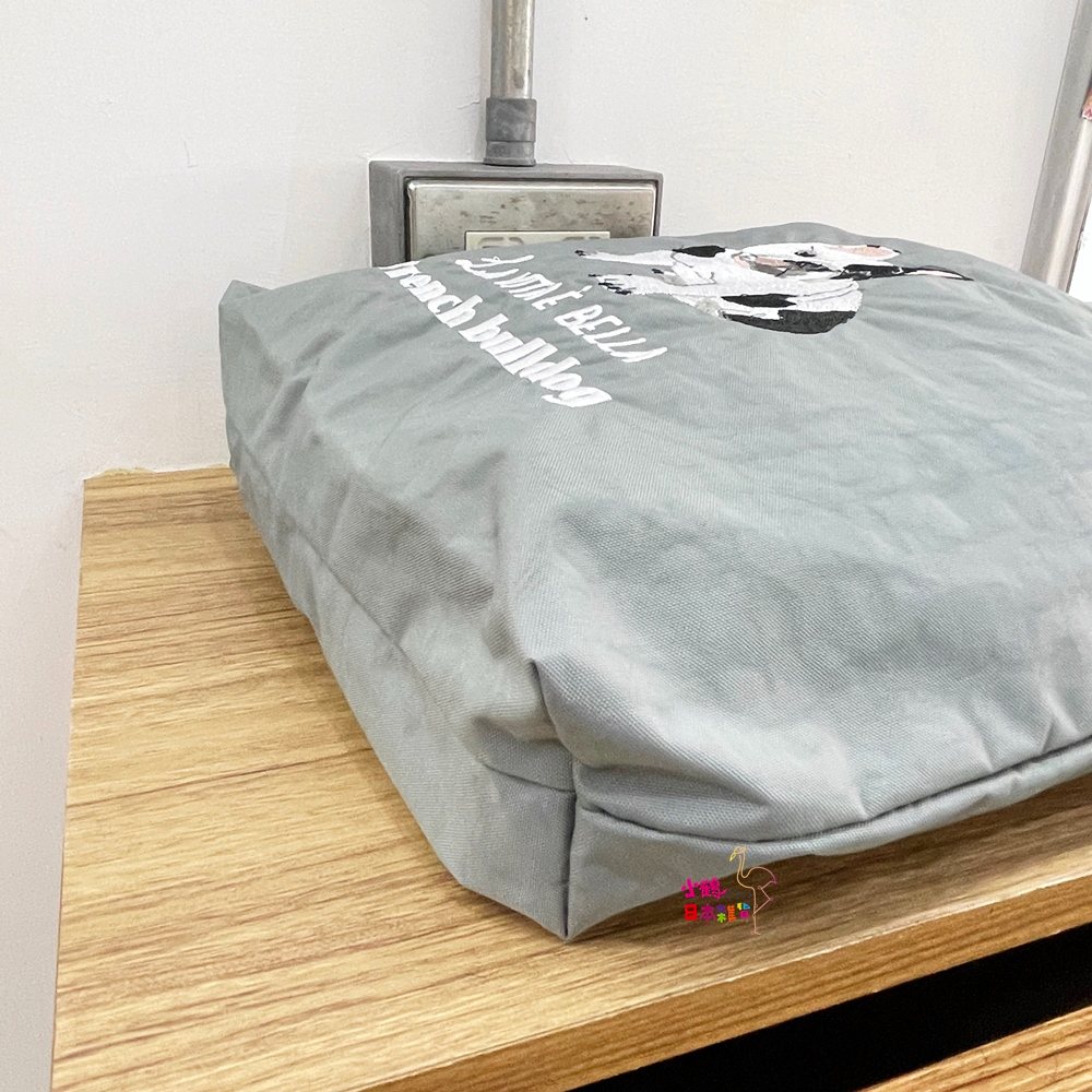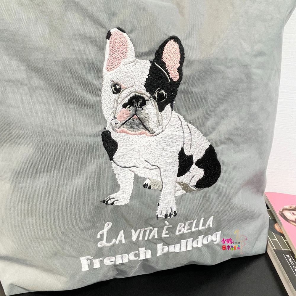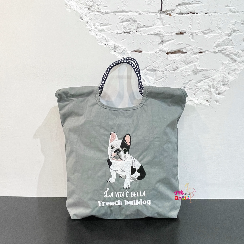 日本 polkapolka 動物刺繡 肩背 手提袋(灰色/法鬥)✈日本直送,現貨在台