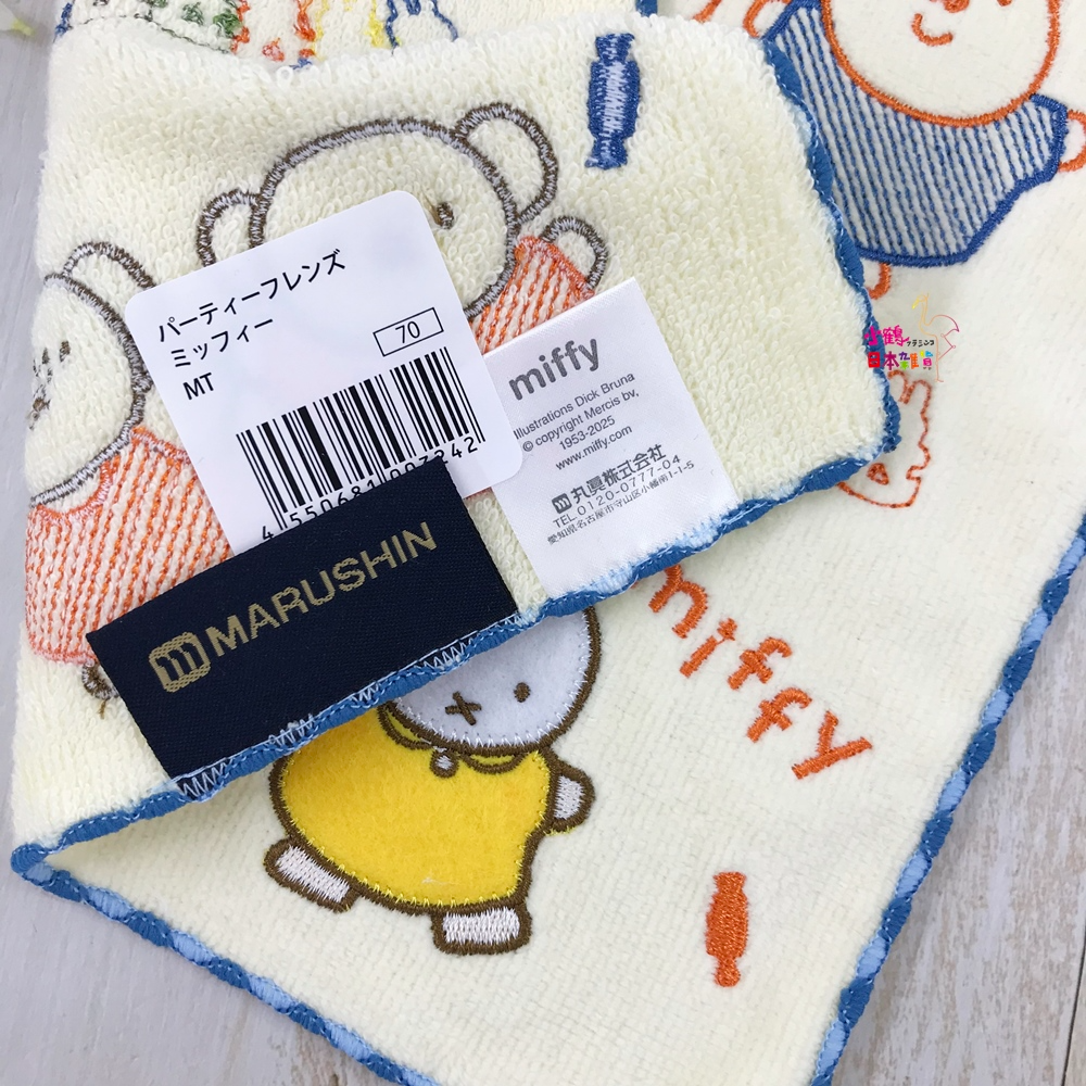 手帕上精緻的 miffy 刺繡圖案,搭配柔和色調,不論放在包包、口袋或隨身小物中,拿出來的瞬間都能帶來好心情。