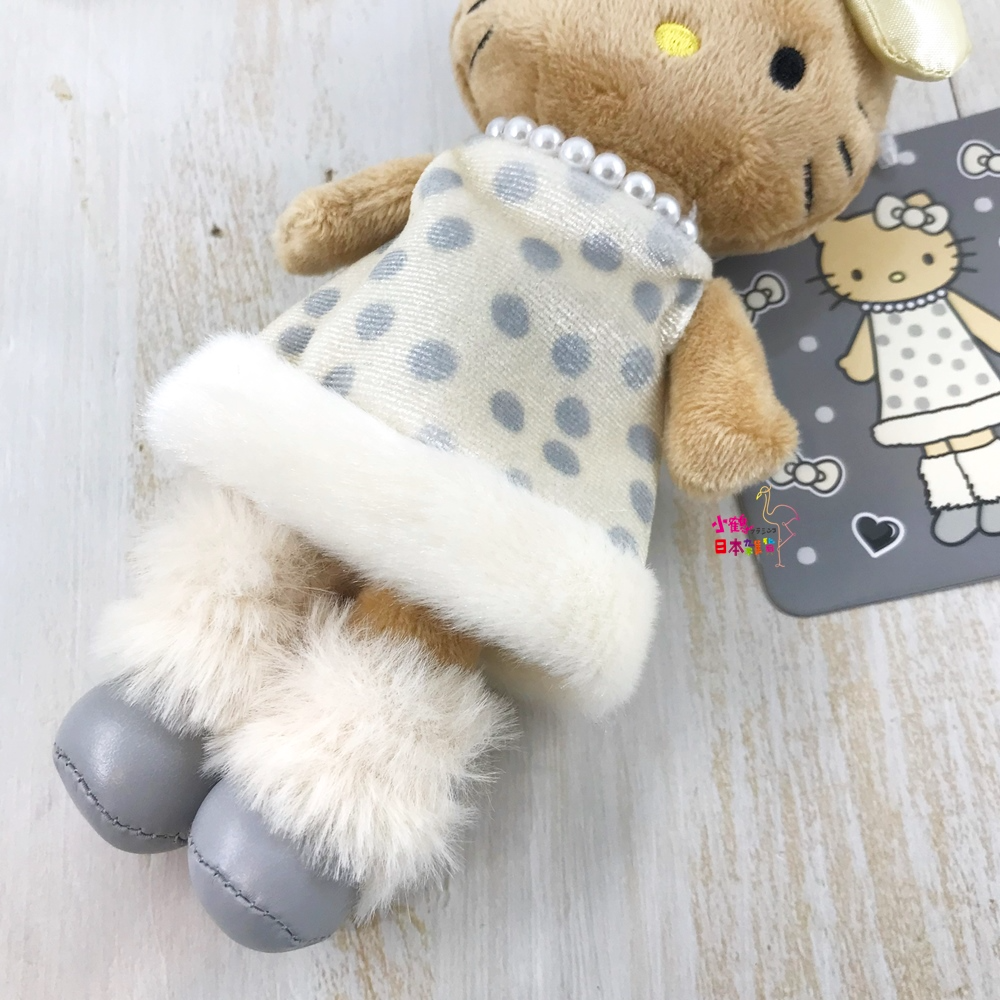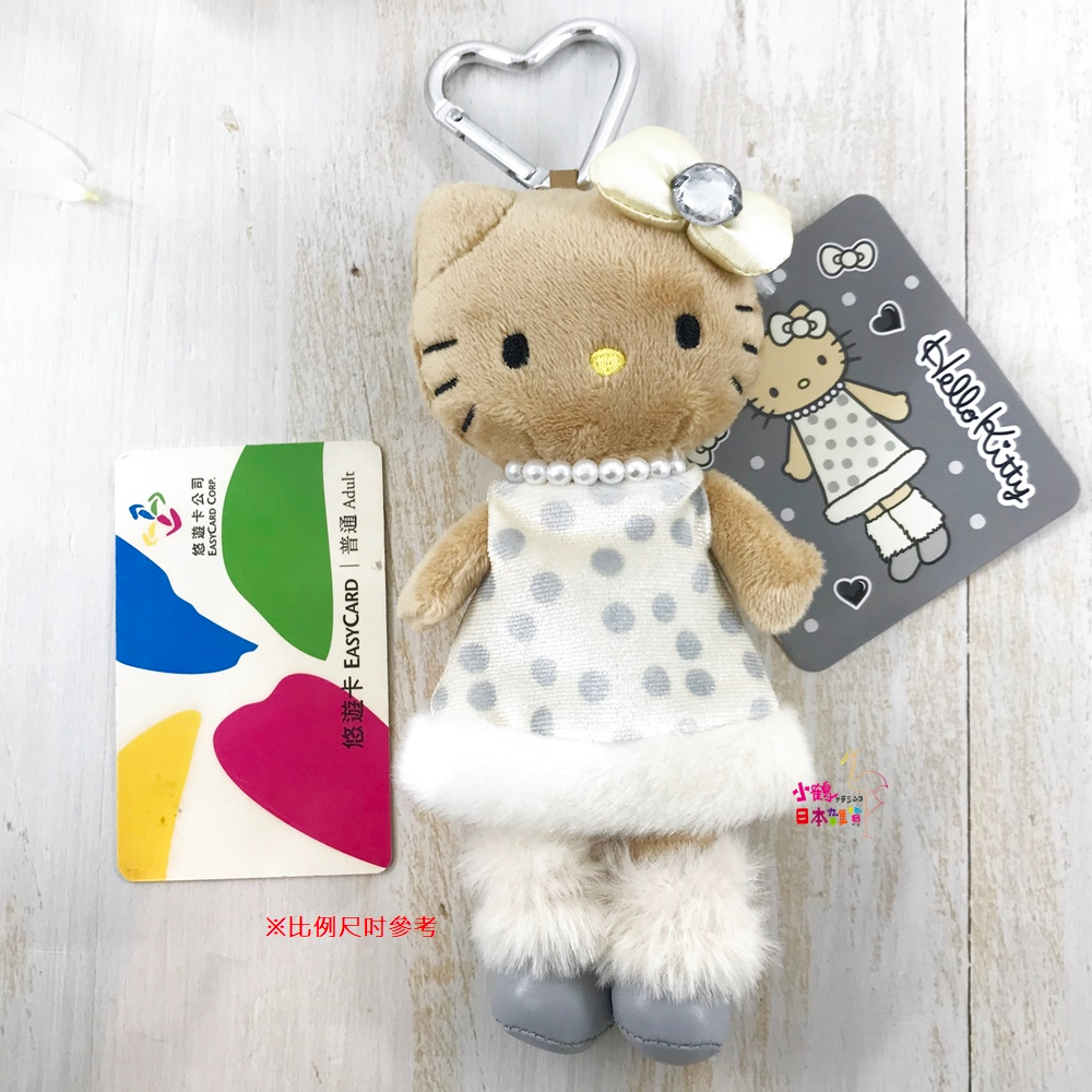 Hello Kitty 冬季款 長腿 愛心扣 玩偶吊飾 日本限定(白底圓點點)✈日本直送|小鶴日貨