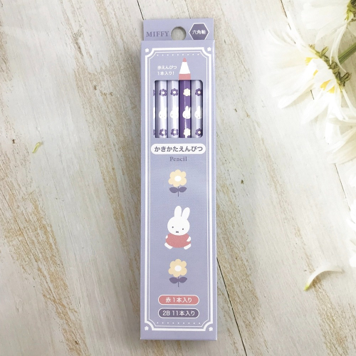 Miffy 米飛兔 花朵系列 日本製 六角軸 2B+紅色 鉛筆(12支/盒)✈日本直送|小鶴日貨