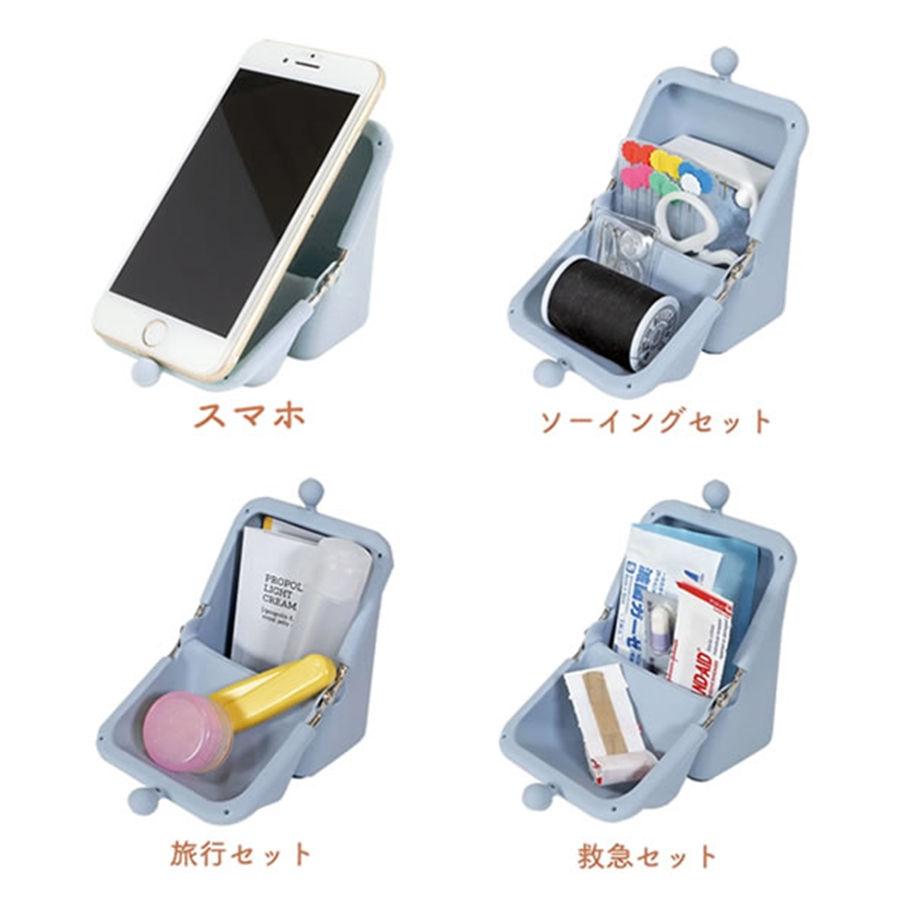 打開後,正面可以收納小物品收納盒或當手機支架。