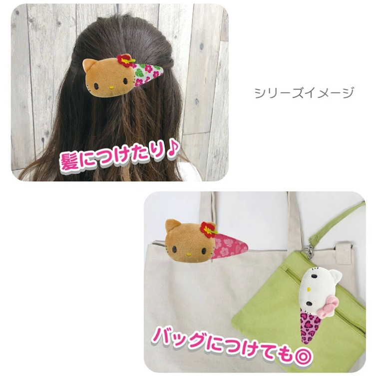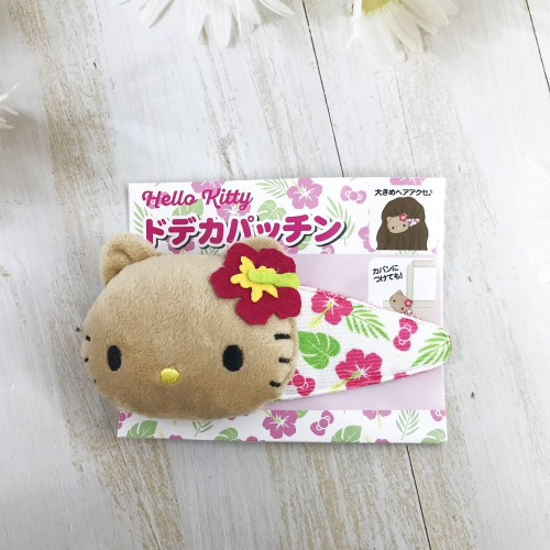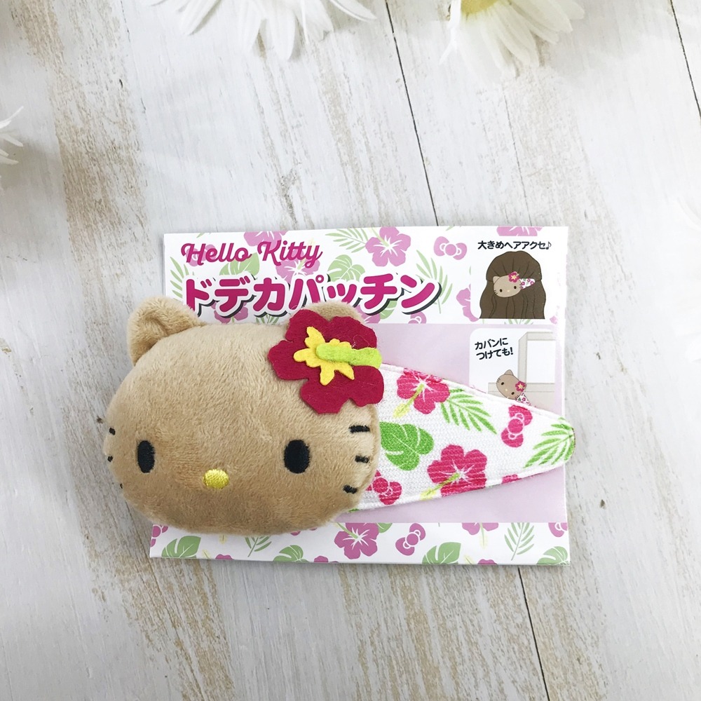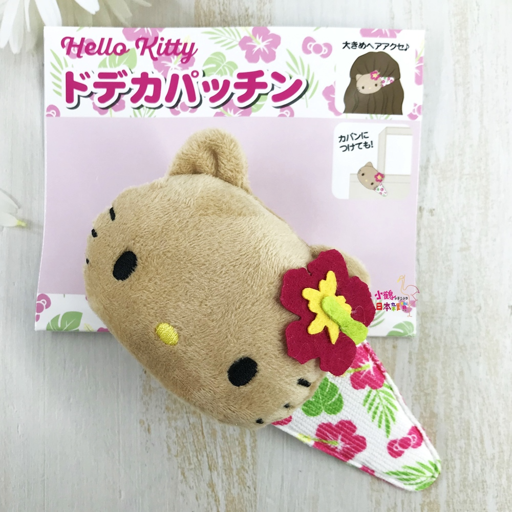 這款Hello Kitty絨毛大髮夾,以立體大臉造型搭配亮眼扶桑花點綴,充滿南國度假氛圍。