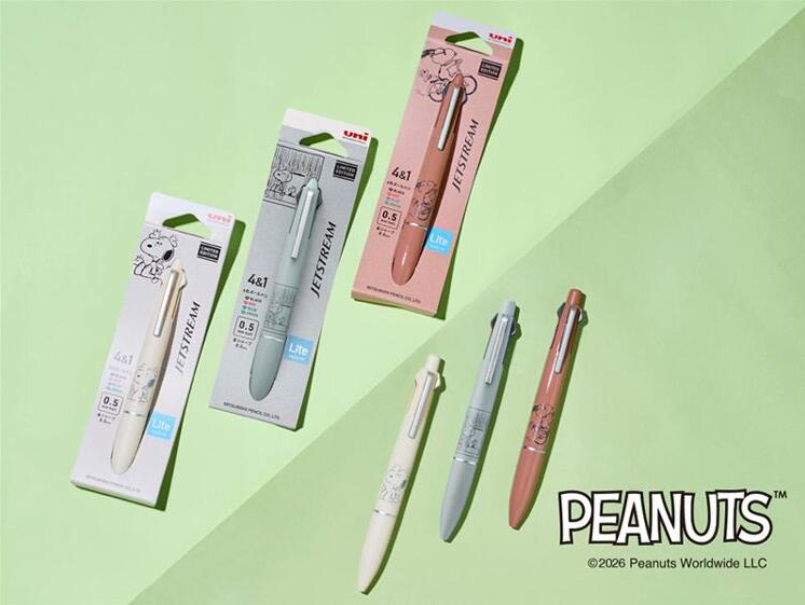 首次推出 Peanuts 設計的 Jetstream Lite Touch Ink 限定款筆軸!