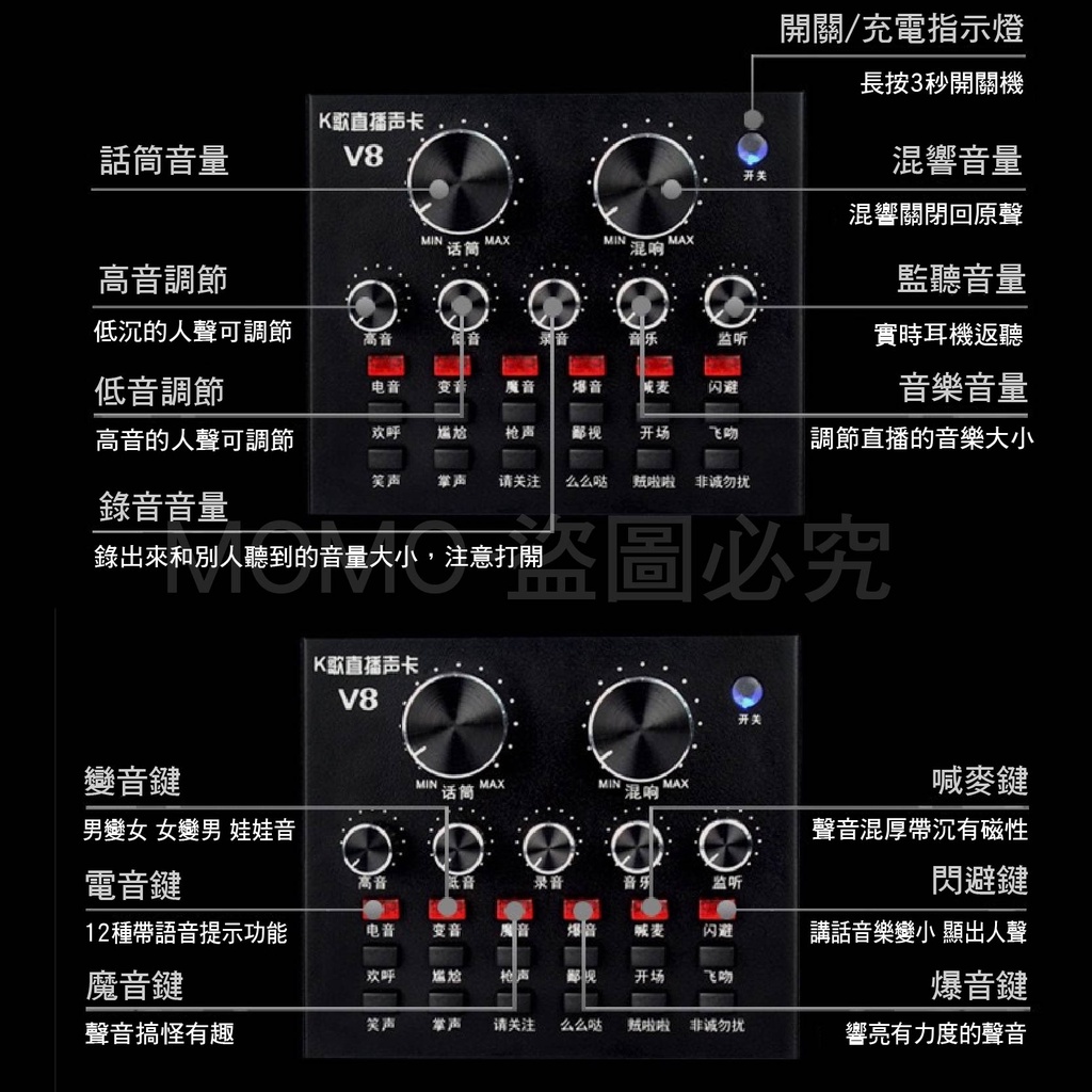 商品配件:音效卡x1、直播線x1、伴奏線x1、充電線x1、說明書x1
