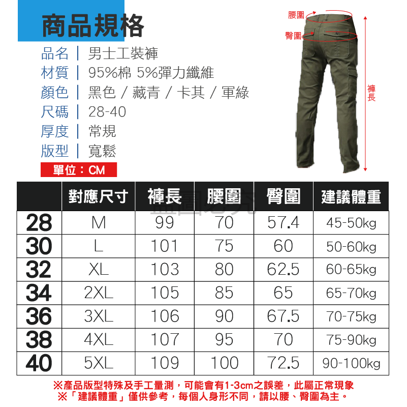 ⚠尺寸表內「建議體重」部分,僅供參考,實際還是要依腰、臀圍為主。