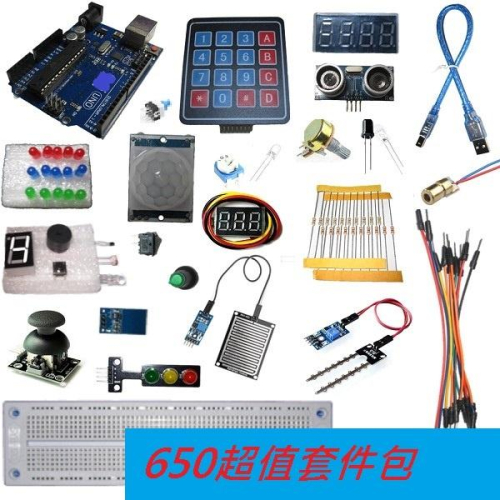 【萍萍】現貨 UNO R3 Arduino官方版本 Atmega16U2 原廠晶片 課程資料 實驗零件 650超值套件包
