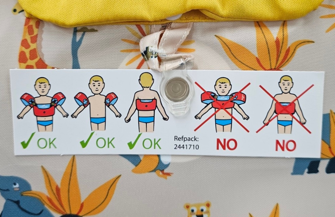 使用後,清洗你的浮具並勿放置於陽光直射處。強烈建議不要使用洗衣機清洗 TISWIM,以免造成浮具縫線破損影響安全性。建議手洗本臂圈-腰帶組合,並以毛巾輕按吸乾水分