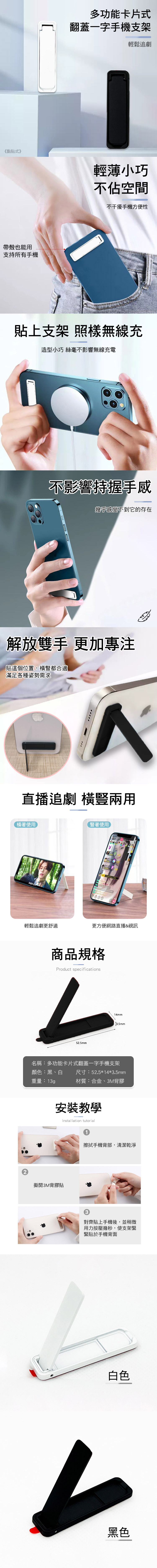 SHOWHAN 多功能卡片式翻蓋一字手機支架 一體式 手機支架 折疊支架 便攜支架 背貼支架 行動電源支架 追劇神器