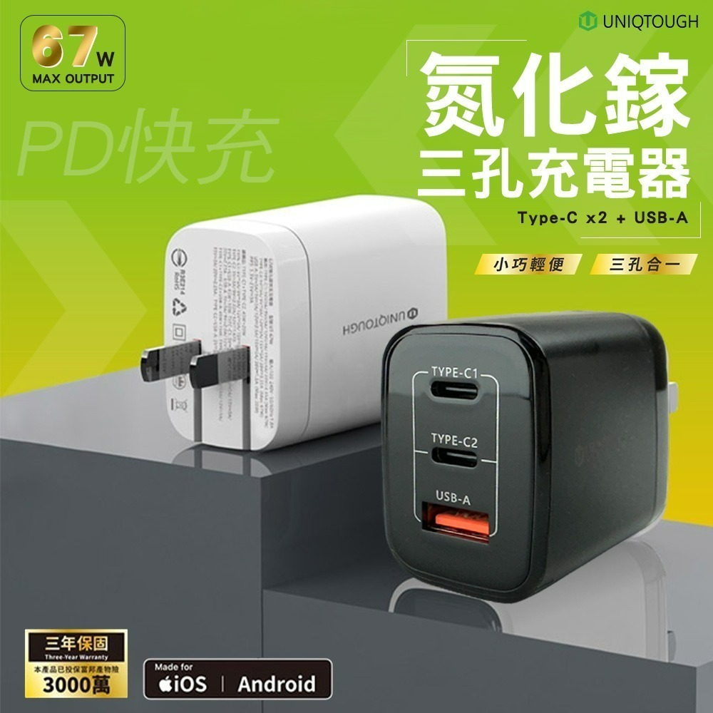 雙Type-C與單USB插頭設計 可同時為三台裝置充電