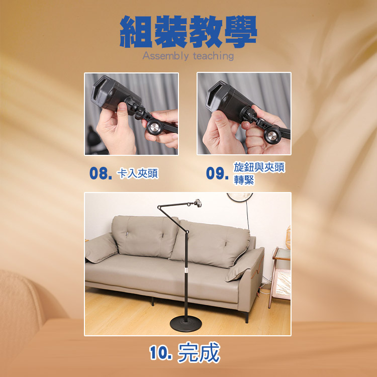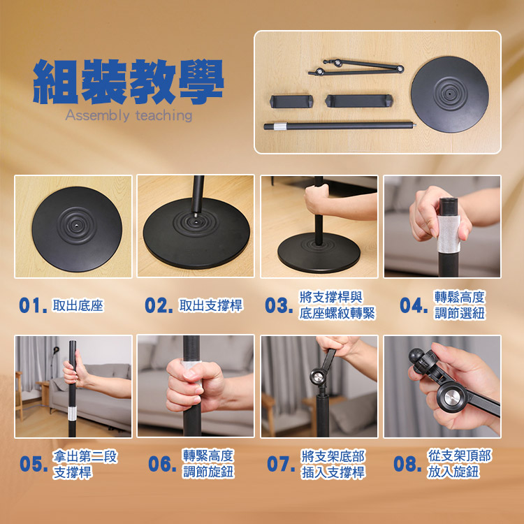 內含:手機夾*1 平板夾*1 底座*1 碳素鋼桿*2